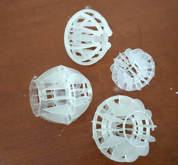 多面空心球填料采用聚丙烯塑料制成球狀,在球中部沿整個周長有一道加固環(huán)多面空心球填料環(huán)的上下各有十二片球瓣,沿中心軸呈放射形布置,適用于二氯化碳脫氣塔,接觸反應塔等裝置。